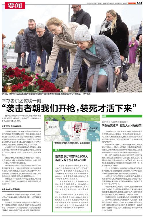 整个俄罗斯经历了一个不眠夜。首都莫斯科西北的克拉斯诺戈尔斯克市一家音乐厅22日晚发生枪击事件,造成大量人员伤亡。