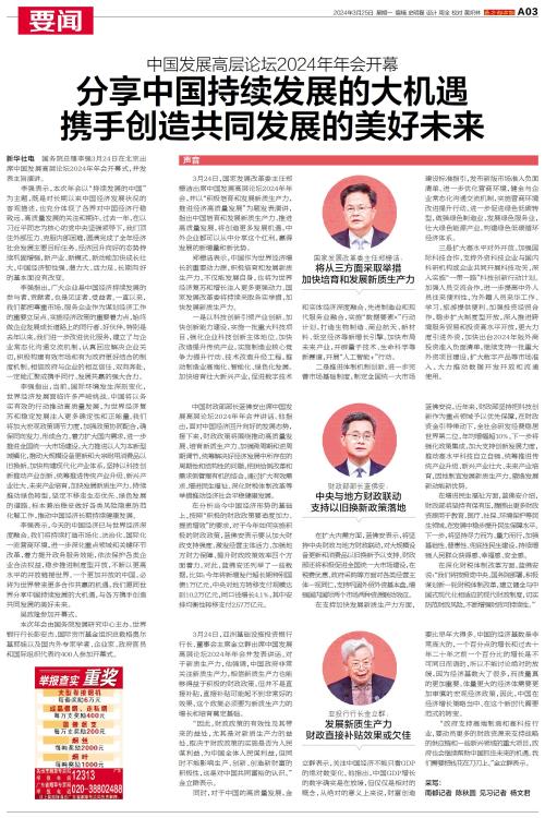 国务院总理李强3月24日在北京出席中国发展高层论坛2024年年会开幕式,并发表主旨演讲。