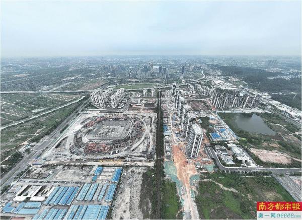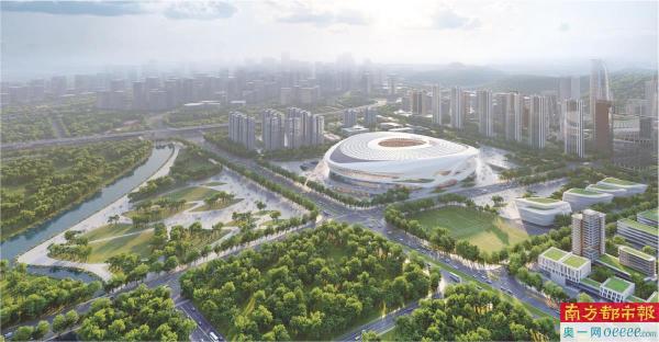 广州足球公园效果图。广州足球公园位于番禺谢村,紧邻全国客流量最大的高铁站广州南站东侧,地处南站-长隆-万博商圈重要节点。城投宣供图