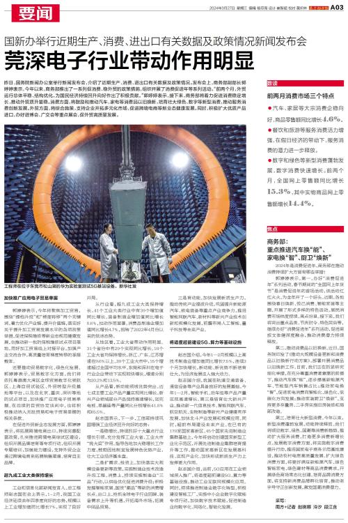 昨日,国务院新闻办公室举行新闻发布会,介绍了近期生产、消费、进出口有关数据及政策情况。