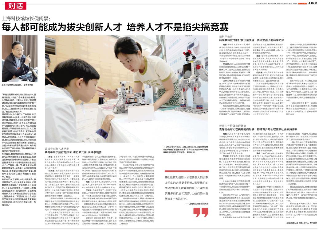 今年全国两会期间,全国政协委员、上海科技馆馆长倪闽景对南都记者谈起当前教育面临的变与不变,“以知识传授为宗旨的传统教育核心,在人工智能时代必然要面临根本转变。