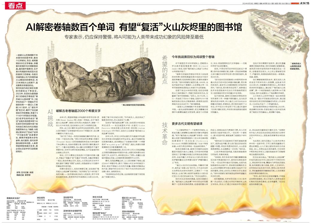AI解密卷轴数百个单词 有望“复活”火山灰烬里的图书馆