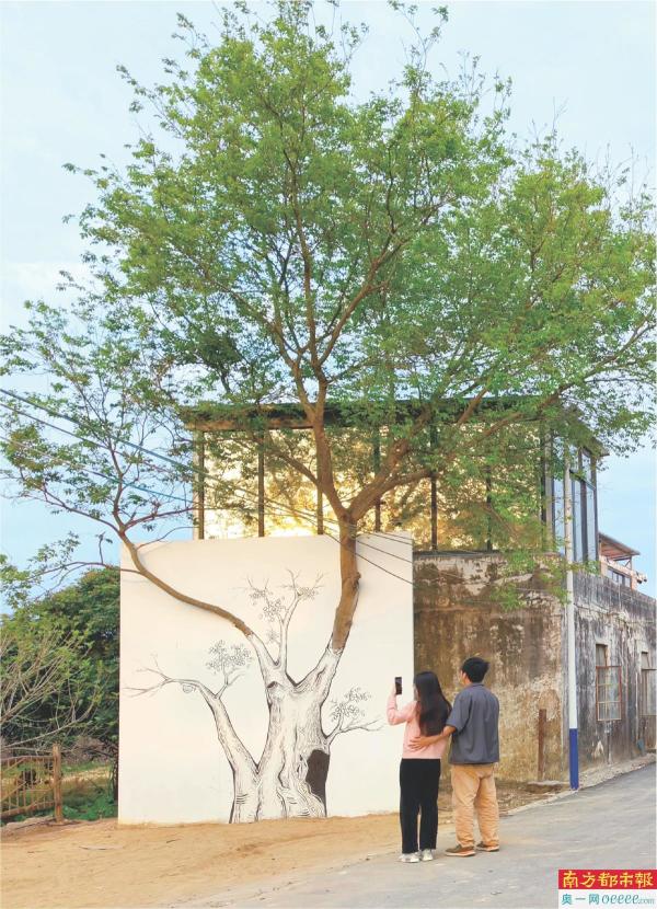 3月22日,在阳江市阳东区东城镇石仑村路边,有一棵牛筋树成为了“画中树”,这里每天都有游客来打卡。