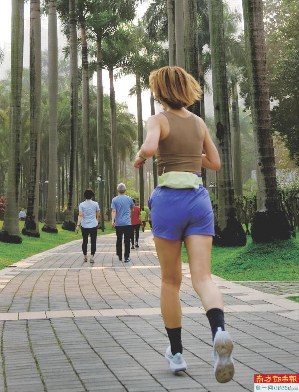 昨日早晨,广州市天河区珠江公园,市民在锻炼身体。广州迎来1961年以来最早的“气候入夏日”。 南都拍客 欧伟伦 摄