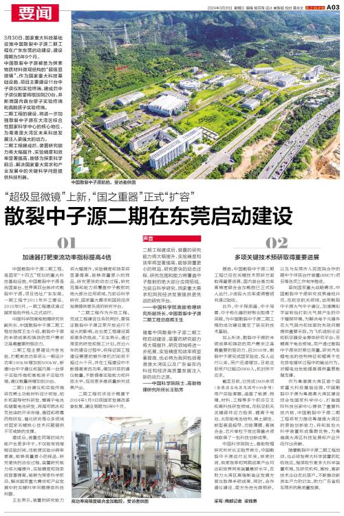 3月30日,国家重大科技基础设施中国散裂中子源二期工程在广东东莞启动建设,建设周期为5年9个月。