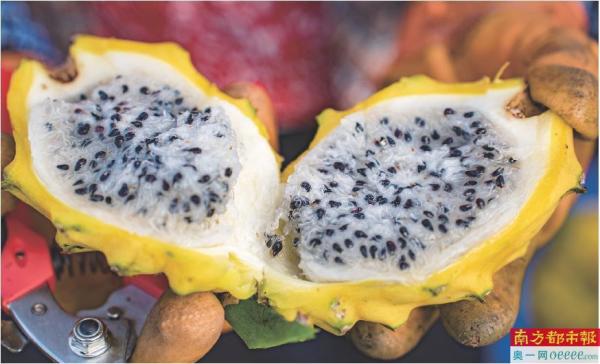清明节前后,珠海斗门上新了火龙果家族的“新贵”燕窝果:通体金黄,表面带刺,颜值诱人,甜度爆表。正上市的燕窝果成了春日尖货儿。目前,珠海只有斗门区乾务镇的喜见生态农场规模化开展培育种植。