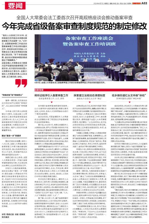 4月1日,全国备案审查工作座谈会暨备案审查工作培训班在重庆召开。