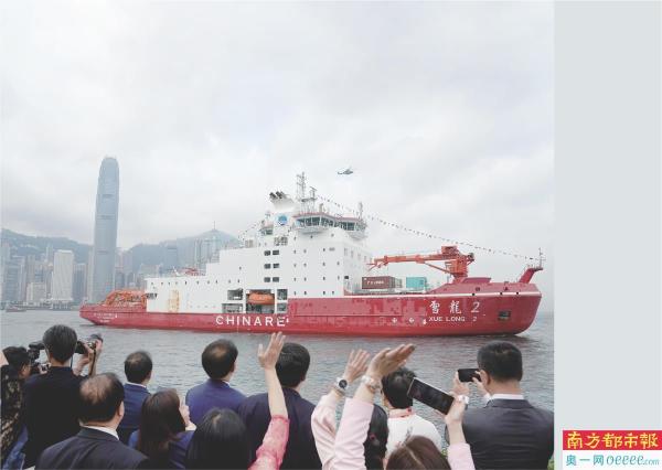 香港各界在尖沙咀海港城举行热烈的迎船仪式,此次是“雪龙2”号首次到访香港,也是继“雪龙”号2004年停靠香港后,中国极地科考破冰船时隔近20年再次访港。
