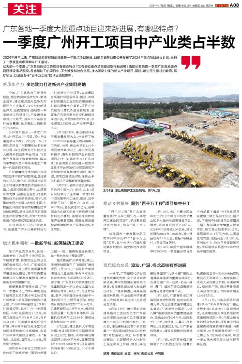 2024年开年以来,广东各地紧锣密鼓地推进新一年重点项目建设。