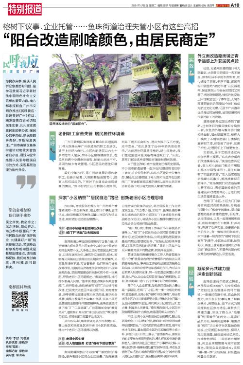 本期报道关注,广州市黄埔区鱼珠街道针对物业失管的老旧小区,通过向企业托管以及引导居民自治的方式,实现基层治理的迭代升级。