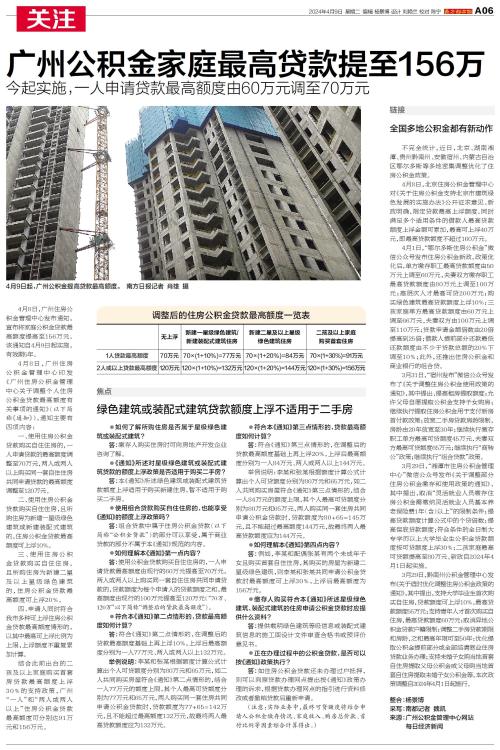 4月8日,广州住房公积金管理中心发布通知,宣布将家庭公积金贷款最高额度提高至156万元。该通知自4月9日起实施,有效期5年。
