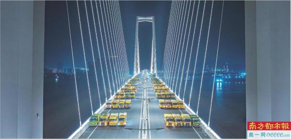 4月12日凌晨,深中通道中山大桥(斜拉桥)正在进行桥梁荷载试验,60多辆车参与,每辆车载重32吨。据悉,深中通道伶汀洋大桥(悬索桥)也将进行桥梁荷载试验。深中通道全长约24公里,双向八车道,是集“桥、岛、隧、水下互通”于一体的跨海通道。从中山市出发,自西向东入海依次经过中山大桥、伶仃洋大桥、西人工岛、海底隧道和东人工岛后进入深圳市。目前,深中通道仍有大量机电、交安、路面、房建附属等工程正在全力推进施工,为6月具备通车条件冲刺。项目建成通车后,深圳至中山的车程将从目前的约2小时缩短至30分钟内。