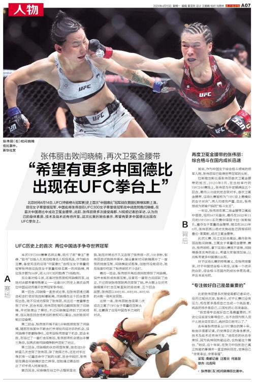 北京时间4月14日,UFC(终极格斗冠军赛)史上首次“中国德比”冠军战在美国拉斯维加斯上演。