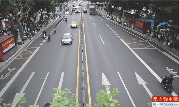 近日,南都记者来到西槎路现场看到,一条崭新、平坦的双向四车道沥青路面展现在眼前。道路中间有黄色双实线,还竖立了黑色防护栏,保障双向行车安全。道路两侧隔出约2米宽的非机动车道,并用交通立柱及防护栏将其与机动车道隔离。道路两侧的人行道也新铺了干净整齐的透水地砖。人行道旁划有指示非机动车停放的标线,停放区域的标线旁还竖立了多根间隔约一米的隔离柱,是行人安全通行与非机动车有序停放的保障。