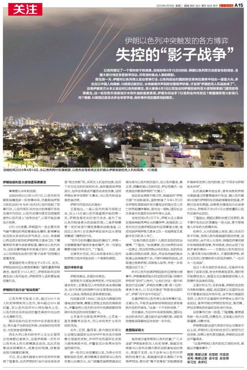 王晋指出,一是以色列的斋月刚刚过去,加上14日是以色列每星期开始的第一天,伊朗选择在此时进行攻击,是为了给以色列制造更大的战略恐慌;二是伊朗需要一定时间进行情报搜集和战略准备,以回应以色列1日空袭伊朗驻叙利亚大使馆领事部门建筑的行径。