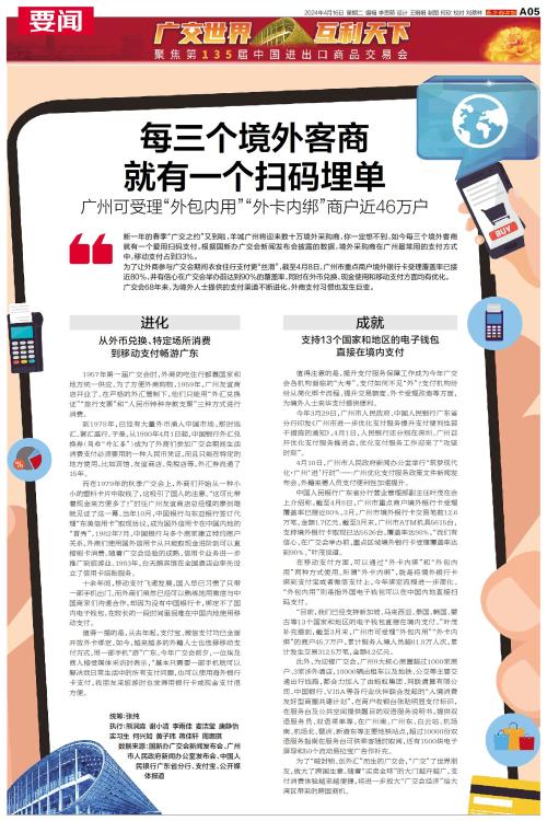 新一年的春季“广交之约”又到啦,羊城广州将迎来数十万境外采购商,你一定想不到,如今每三个境外客商就有一个爱用扫码支付。