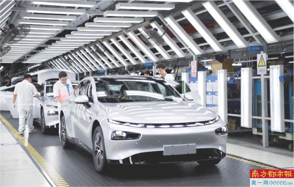 工作人员在广东肇庆小鹏汽车智能网联科技产业园内总装车间查看即将下线的整车。 新华社发