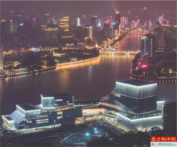 4月21日晚,广州白鹅潭大湾区艺术中心外立面亮灯。该艺术中心拟于5月1日举行开馆仪式。 南都记者 陈冲 邹卫 摄