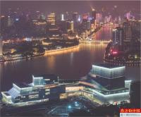 4月21日晚,广州白鹅潭大湾区艺术中心外立面亮灯。