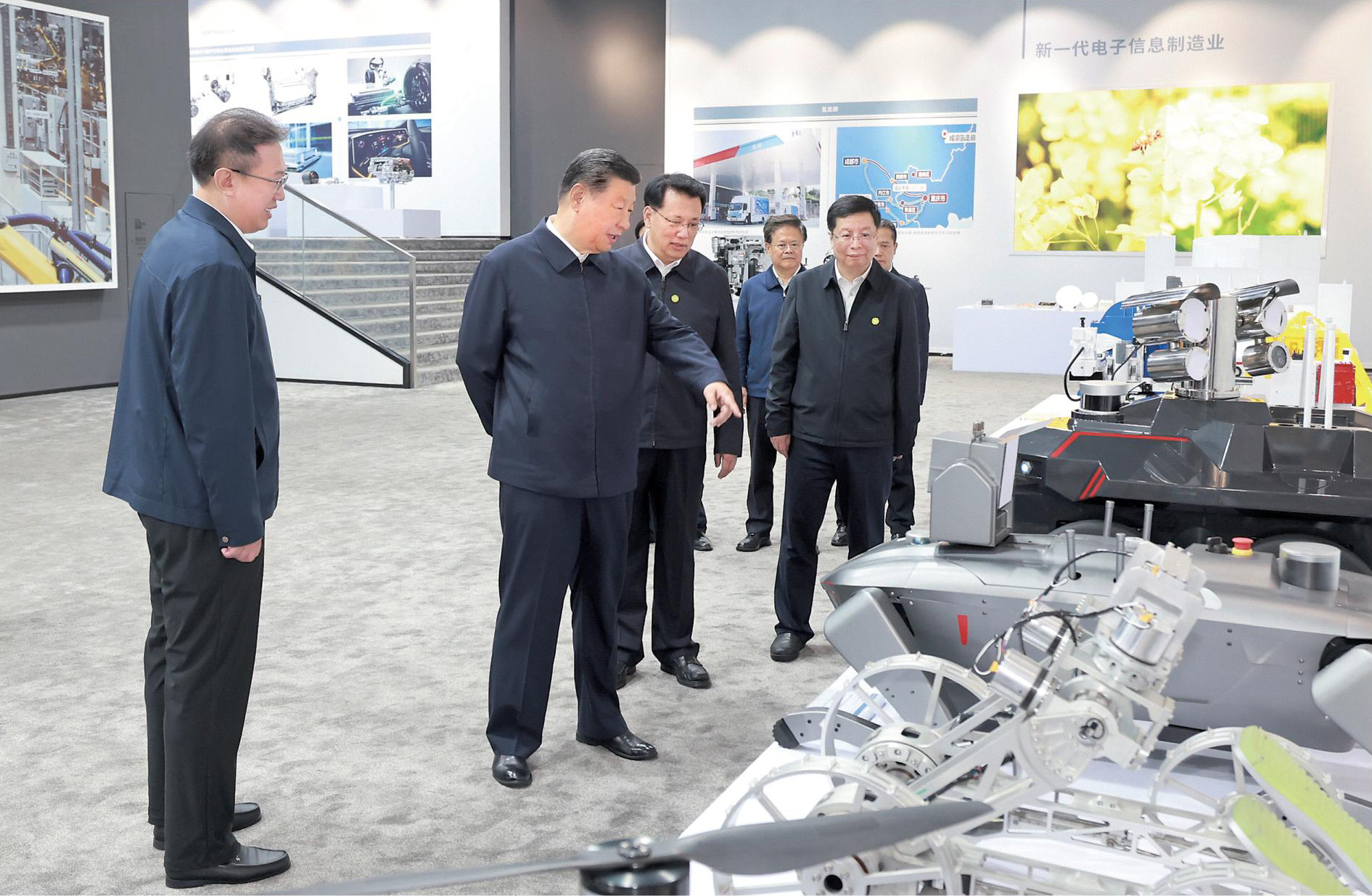 4月22日至24日,中共中央总书记、国家主席、中央军委主席习近平在重庆考察。这是22日下午,习近平参观重庆科技创新和产业发展成果展示。 新华社发
