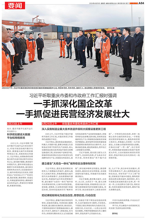 4月22日下午,习近平在重庆国际物流枢纽园区重庆铁路集装箱中心站,同货车司机、列车司机、装卸工人、场站管理人员等亲切交流。 新华社发 4月23日上午 地