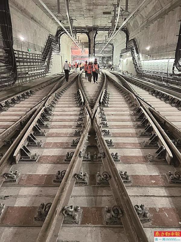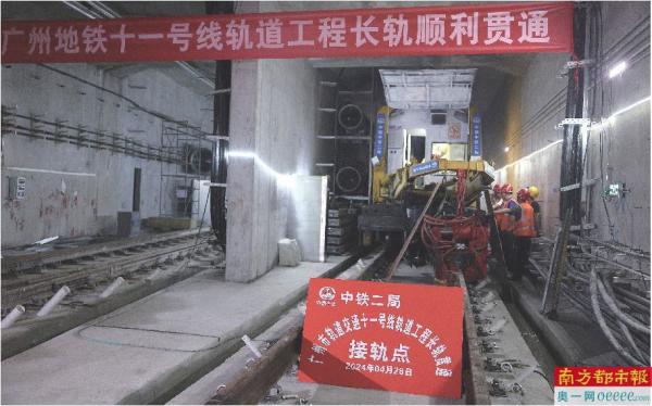 中铁二局广州地铁十一号线轨道工程项目经理杨宣广介绍,“为确保铺轨任务的顺利推进,我们在全线共设置8个铺轨基地,采用‘机铺为主、散铺为辅’的施工方式,不断优化施工组织及施工方案;采取施工作业面进行掉头、转线、转场,提前完成关键道岔铺设等方式,解决上下行施工转线问题,平稳有序地推动施工生产,按节点要求完成施工任务。”