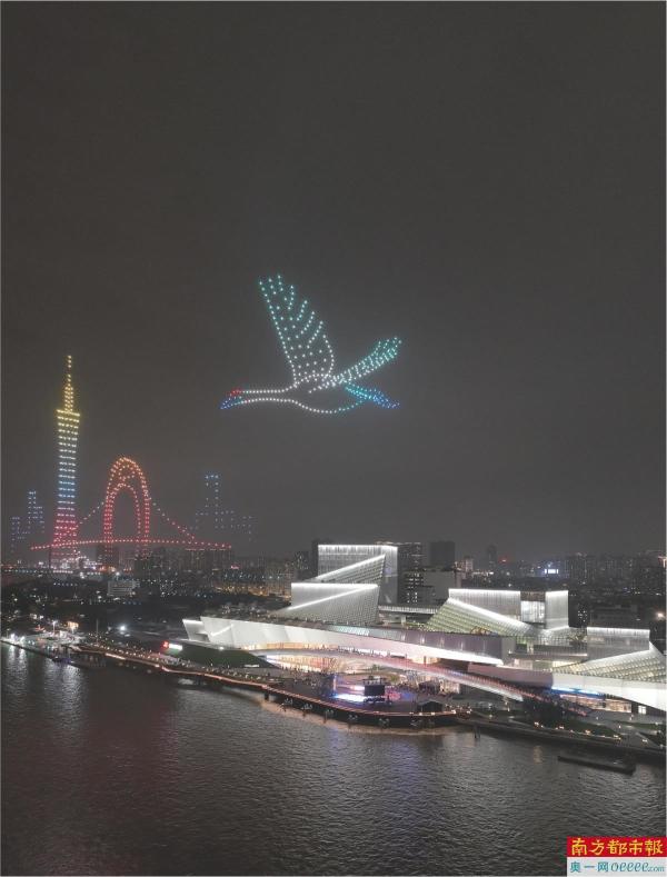 4月28日晚,白鹅潭大湾区艺术中心启用仪式举行,无人机表演及灯光秀吸引众多市民观看。 南都记者 黎湛均 张志韬 徐杰 摄