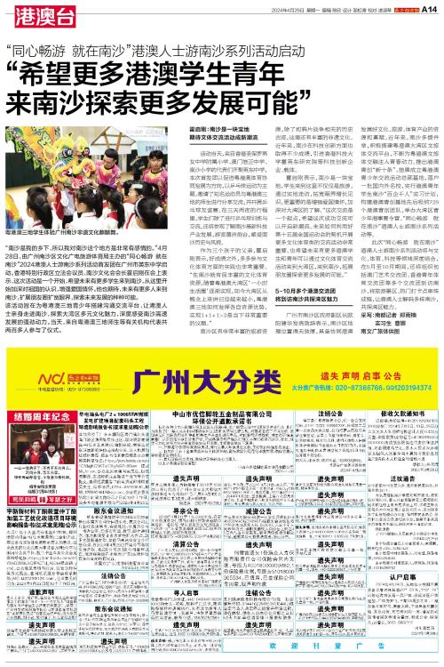 4月28日,由广州南沙区文化广电旅游体育局主办的“同心畅游 就在南沙”2024港澳人士游南沙系列活动首发团在广州市英东中学启动。