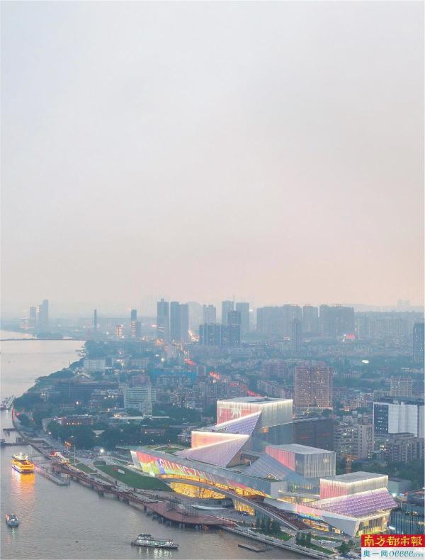 夜幕下的白鹅潭大湾区艺术中心,外立面灯光秀格外引人注目。 新华社发