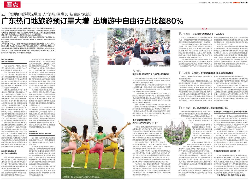 广东热门地旅游预订量大增 出境游中自由行占比超80%