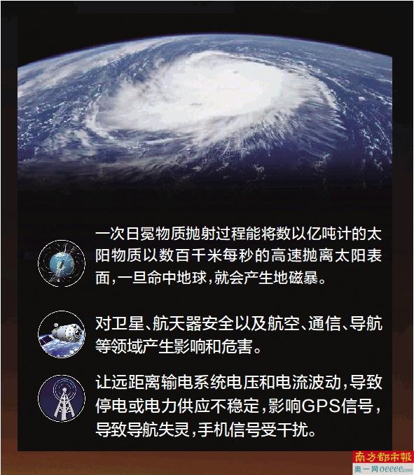 南京大学天文与空间科学学院副院长程鑫教授表示,地磁暴会让远距离输电系统电压和电流波动,导致停电或电力供应不稳定,在轨卫星姿态改变,影响GPS信号,导致导航失灵。