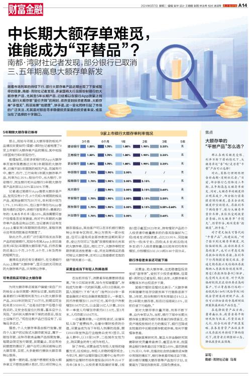 南都·湾财社记者发现,多家国有大行及股份制银行的大额存单产品,尤其是5年长期产品,已经难以在银行App货架上找到。