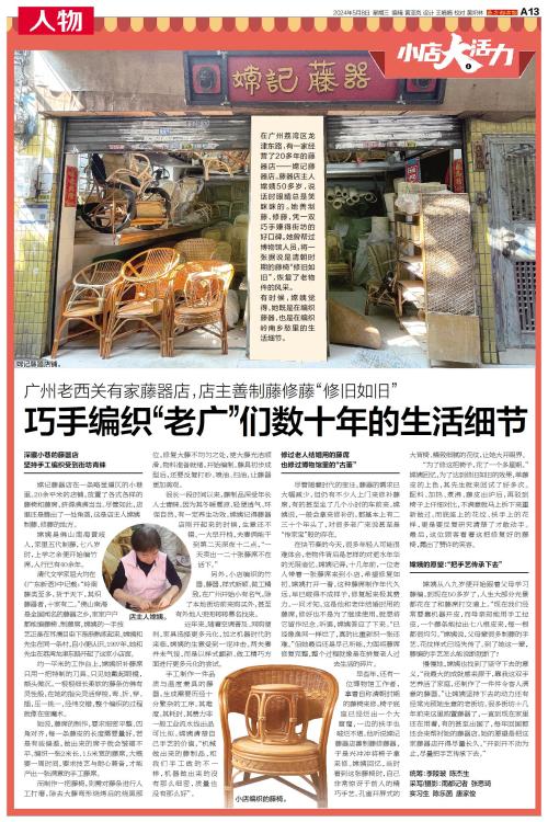 在广州荔湾区龙津东路,有一家经营了20多年的藤器店——嫦记藤器店。藤器店主人嫦姨50多岁,说话时眼睛总是笑眯眯的。