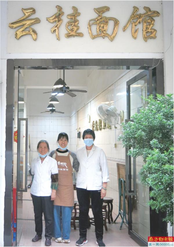 云桂面馆接班人凌绮泳(中间)与两位老员工。