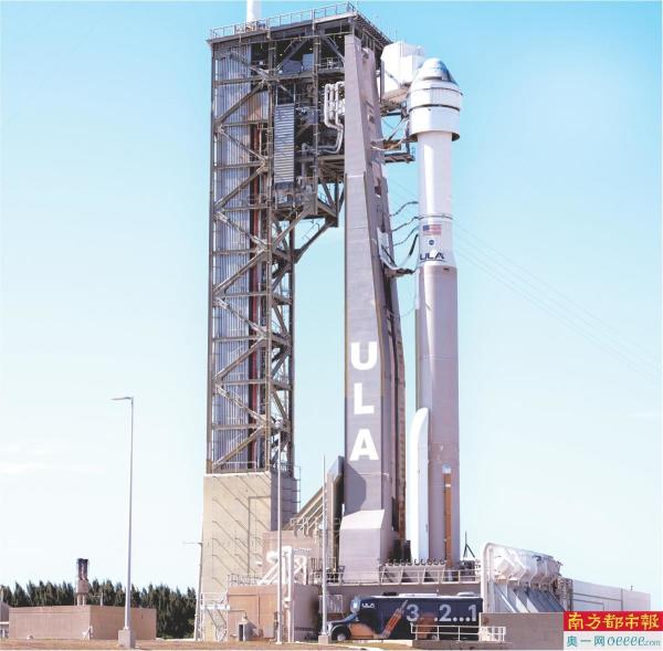 载有“星际客机”的“宇宙神5”型火箭在美国佛罗里达州卡纳维拉尔角太空军基地待命。 新华社发