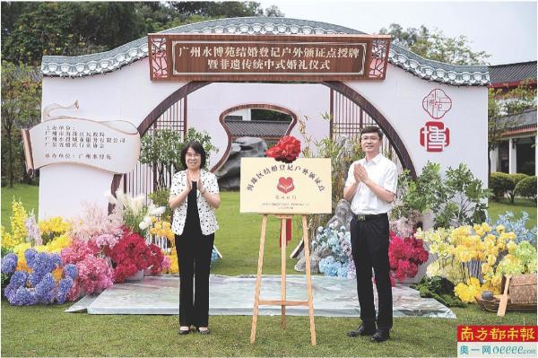 5月9日,在广州市海珠区的绿色生态地标广州水博苑,举行了海珠区首个园林式结婚登记户外颁证点揭牌仪式。