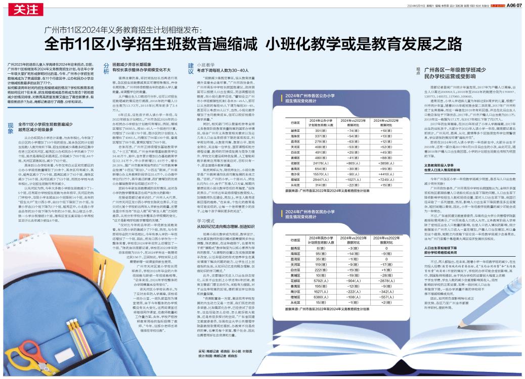 日前,广州市11区相继发布2024年义务教育招生计划。
