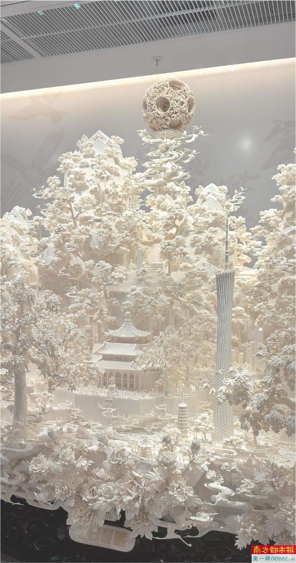 大湾区艺术中心非遗馆展品:大型骨雕作品《湾区同心》局部。 摄影:梁炜培
