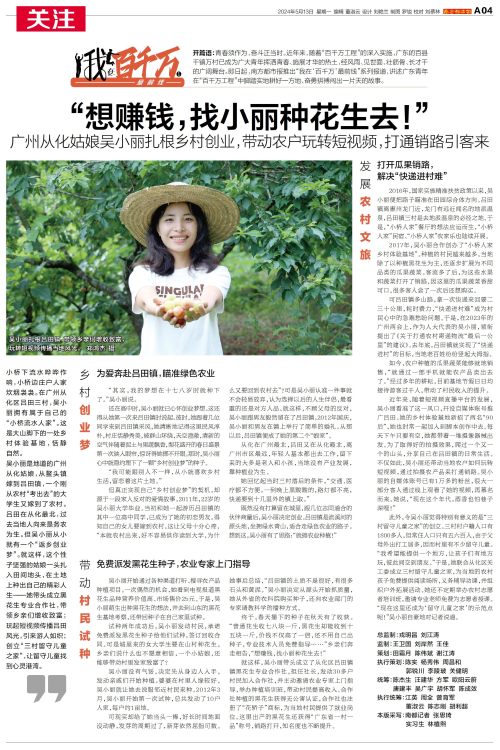 开篇语:青春须作为,奋斗正当时。近年来,随着“百千万工程”的深入实施,广东的百县千镇万村已成为广大青年挥洒青春、施展才华的热土,经风雨、见世面、壮筋骨、长才干的广阔舞台。即日起,南方都市报推出“我在‘百千万’最前线”系列报道,讲述广东青年在“百千万工程”中脚踏实地耕好一方地、奋勇拼搏闯出一片天的故事。