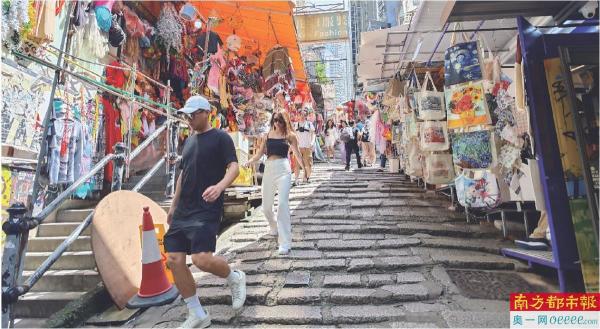 香港经典旅游景点石板街及其商铺。