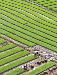 3月29日,广州增城派潭镇高埔村南方丝苗米种植基地,农民将育好的秧苗卷起等待抛秧。 南都拍客 刘志峰 摄 发行时间 5月17日 首发30年期