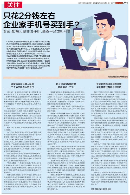 5月14日,据每日经济新闻报道,客户以每条2分钱左右的价格,便可在探客查、励销云两家平台上购买大量知名企业家联系方式。