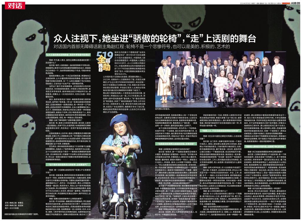 众人注视下,她坐进“骄傲的轮椅”,“走”上话剧的舞台