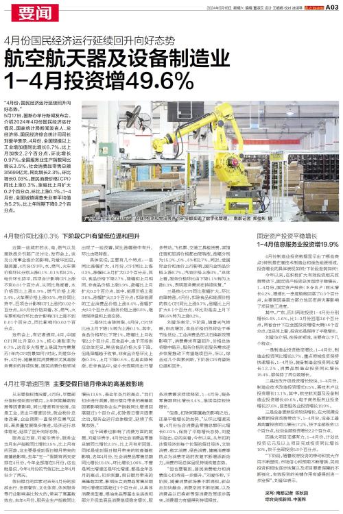5月17日,国新办举行新闻发布会,介绍2024年4月份国民经济运行情况。