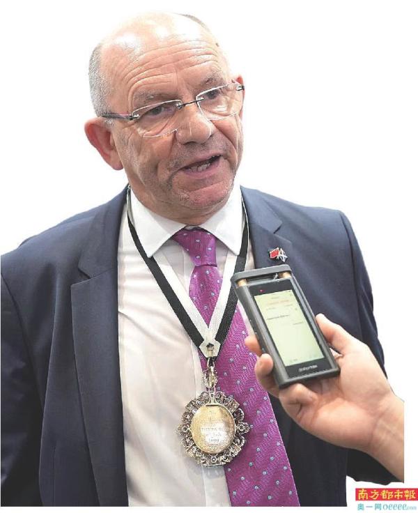 5月23日,英国爱丁堡市市长罗伯特·阿尔德里奇亮相文博会展会现场。他在接受媒体采访时表示,爱丁堡商会和参展公司正在寻找合作伙伴,包括寻找特许经营权和联系人等等。他透露,不管是在文博会现场,还是在过去两天的会议和商业洽谈中,他们都记满了非常有用的联系人信息。