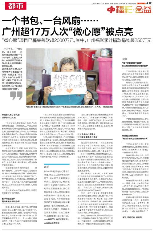 一个书包、一台风扇……广州超17万人次“微心愿”被点亮