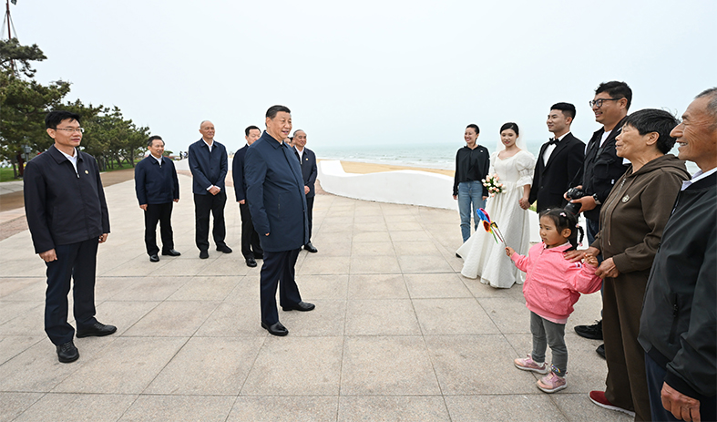 5月22日下午,习近平在日照市阳光海岸绿道同市民亲切交流。 新华社发