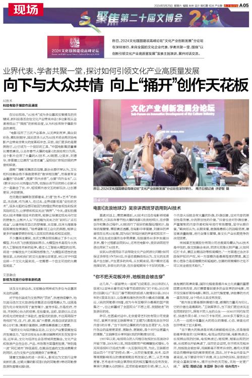 昨日,2024文化强国建设高峰论坛“文化产业创新发展”分论坛在深圳举行,来自全国的文化企业代表、学者共聚一堂,围绕“以创新引领文化产业高质量发展”发表主旨演讲,展开对话交流。