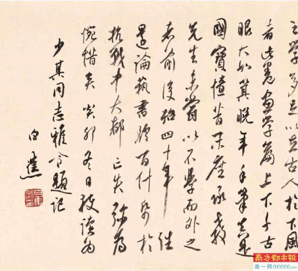 赠赖少其《画学篇》比其他版本文末增加100多字跋语。