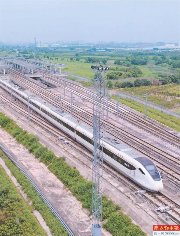 列车经过城际铁路广州莲花山站。5月26日,广东城际“四线”贯通运营,地铁与城际无缝连接,可实现一票互达。由于运营模式和地铁类似,这条超长的城际线路也被称为湾区“大号地铁”。 通讯员 黄沅镇 摄